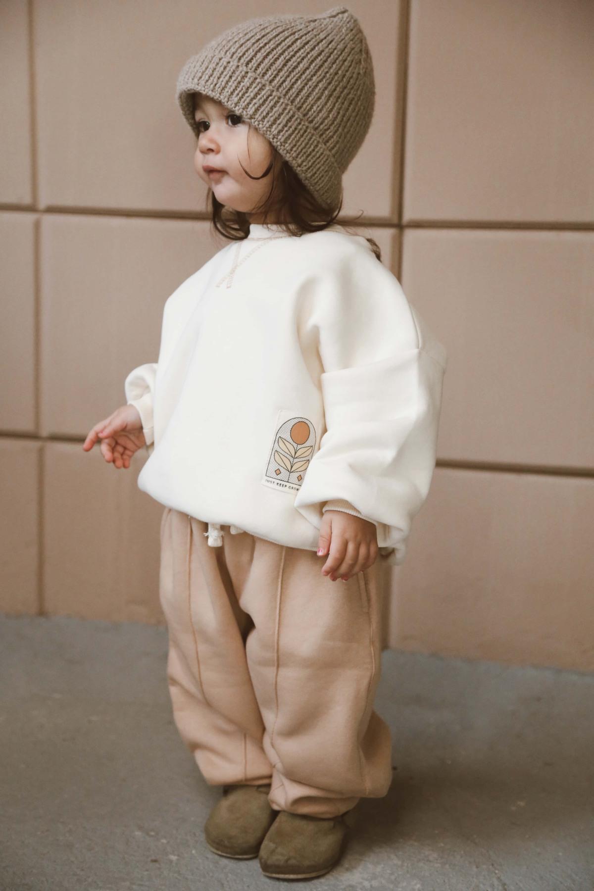 Oversize kalıp eşofman takımımız soğuk kış günleri için uygundur. Şık tasarıma ve baskı detayına sahiptir. %100 pamuk 3 iplik şardonlu kumaştan üretilmiştir. İçi polarlıdır. Pekt içeriği; 1 adet krem sweat, 1 adet kahverengi eşofman altı. Çamaşır makinasında 30 derecede yıkayınız. Tamburlu kurutma önerilmemektedir.