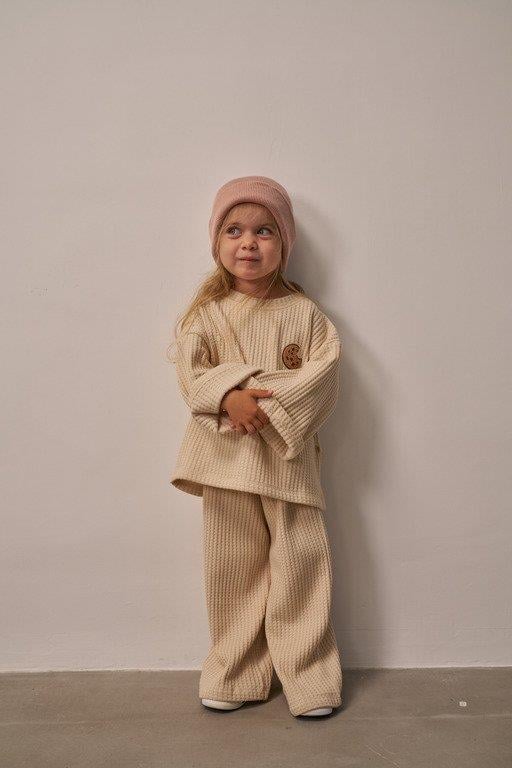 Cookie Nakışlı Poli Waffle Kumaş Çocuk Alt Üst Takım Çocuğunuzun rahatlığı ve şirinliği için özel olarak tasarlanan bu alt üst takım, hem evde hem de dışarıda keyifle kullanılabilir. Yumuşak dokulu waffle kumaş, nefes alabilen yapısı ile gün boyu konfor sağlar.