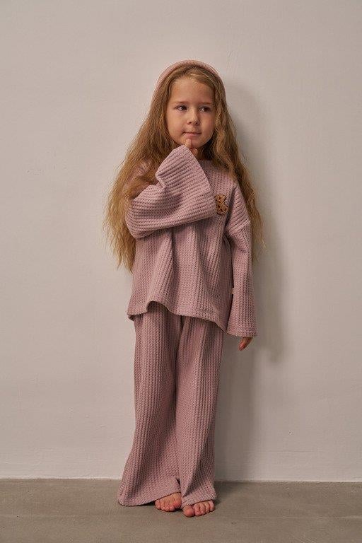 Çocuğunuzun rahatlığı ve şirinliği için özel olarak tasarlanan bu alt üst takım, hem evde hem de dışarıda keyifle kullanılabilir. Yumuşak dokulu waffle kumaş, nefes alabilen yapısı ile gün boyu konfor sağlar.