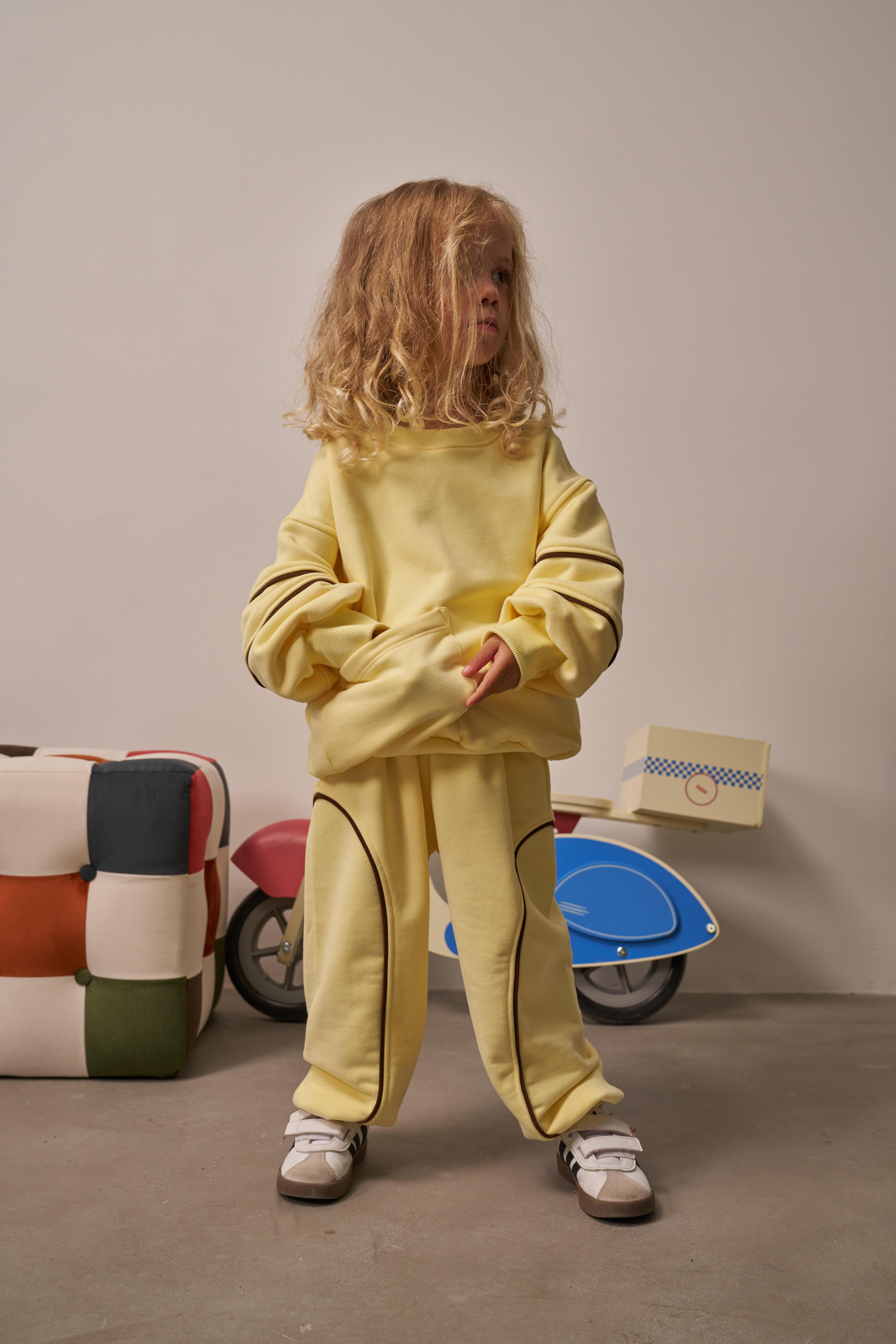 Hem kız hem erkek çocuklar için uygun olan unisex model, %100 pamuklu yumuşak kumaşıyla cilt dostudur. Kontrast dikiş detayları ve modern kesimiyle çocuk modasına enerjik bir dokunuş katar.